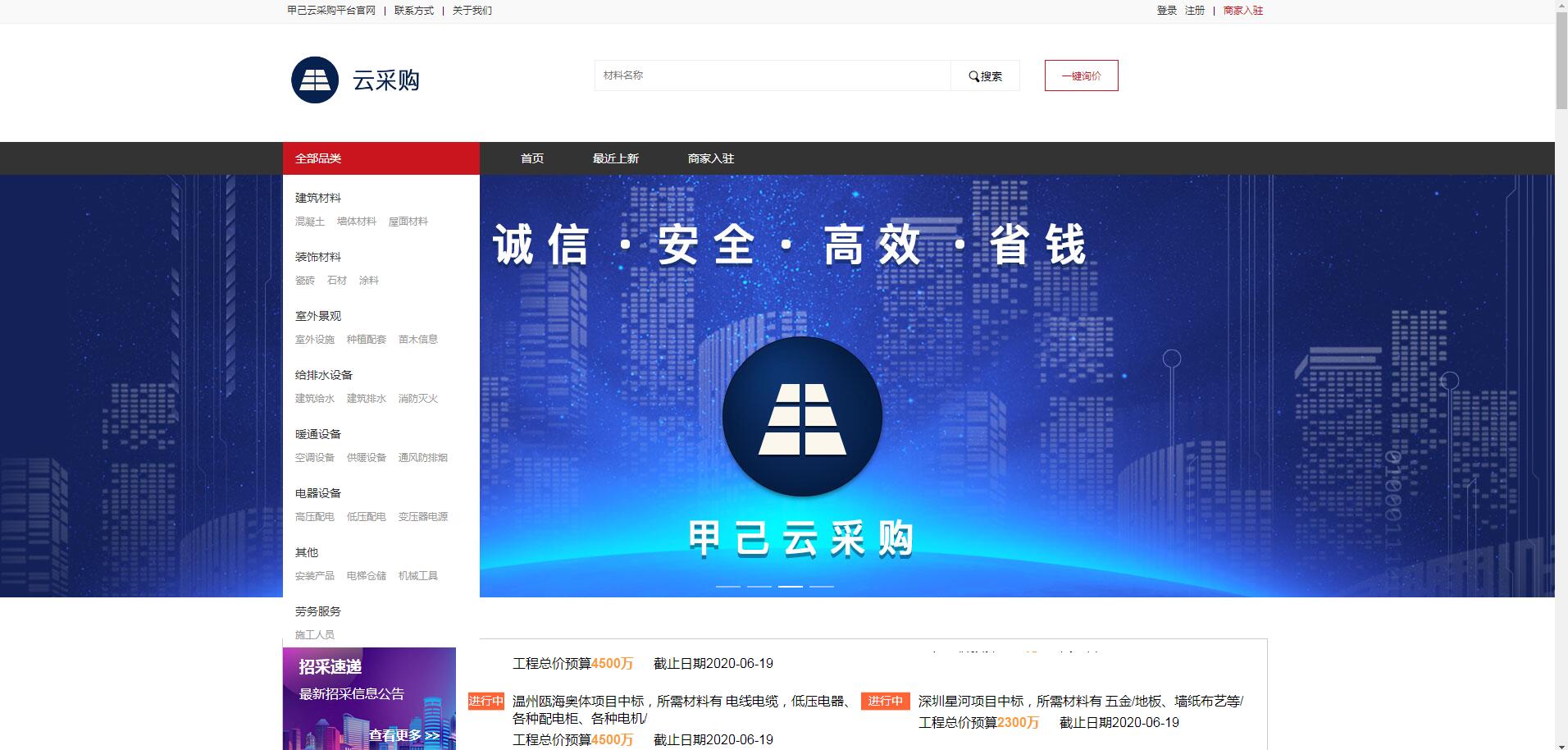 旨在提供“誠信經營、優質優價、方便快捷、安全透明”的一站式綜合采購服務,立志成為新時代最好的采購互聯網平臺! 一句話概括:甲己云采購就是建筑裝飾行業的“天貓” 甲己云采購平臺網址:https://ycg.jiaji16.com。