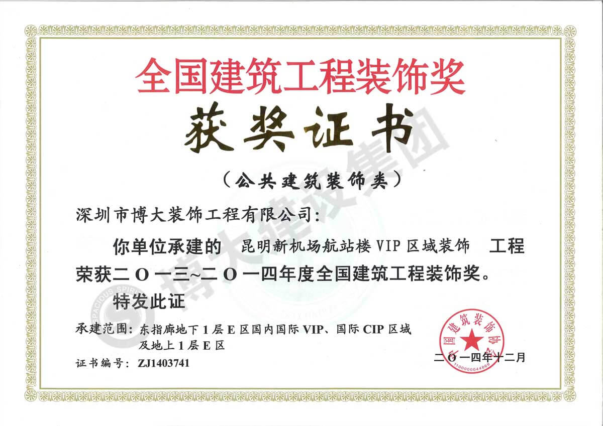 中國建筑工程裝飾獎(昆明新機場航站樓VIP-裝飾)